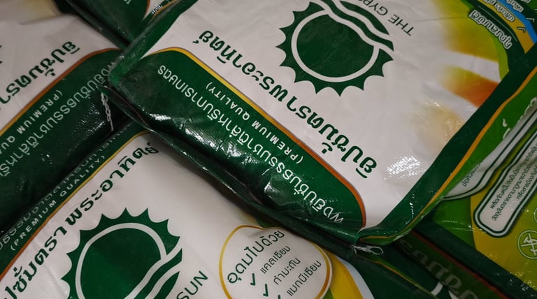 The Gypsun is a major Thai manufacturer and exporter of gypsum ore, plaster, and gypsum-derived products. With over 40 years of experience, we have expert know-how in processing to maintain high product standards. We employ modern innovations, advanced technologies, and specialized industrial machinery, and our reliable standards serve partners in more than 27 countries worldwide. We can produce gypsum-derived raw materials with up to 40 different chemical formulation innovations for use across as many as 10 industries, such as construction, dentistry, ceramics, and agriculture.