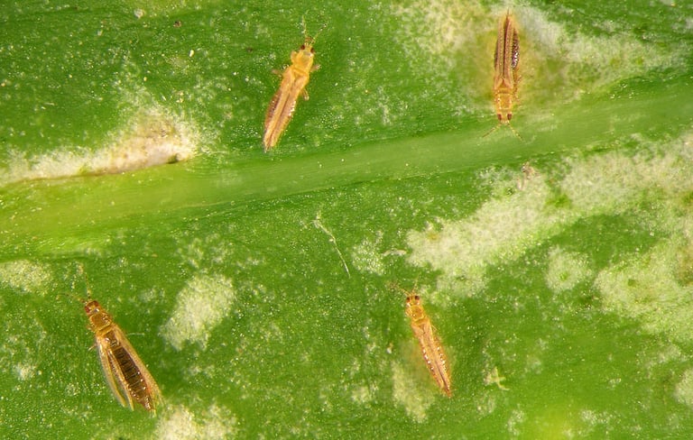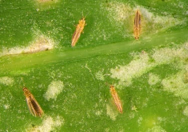 กลุ่มนี้จะเข้าทำลายโดยการดูดน้ำเลี้ยง ทำให้ใบหงิกงอ ผลแคระแกร็น หรือผิวไม่สวย