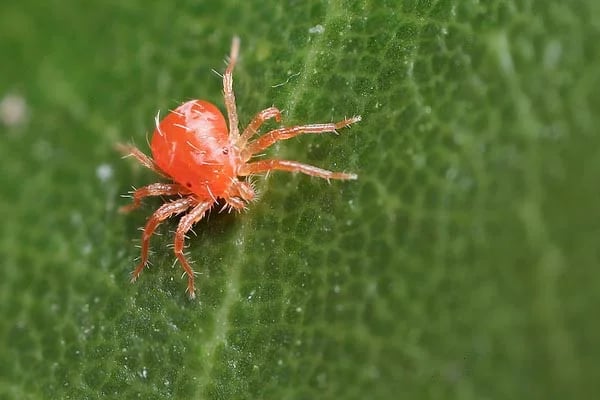 สังเกตได้จากหน้าใบจะมีจุดขาวเล็กๆ กระจายอยู่ทั่วไป มักมากับลมหนาวและอากาศแห้ง ควรใช้สารกำจัดไรโดยเฉพาะ