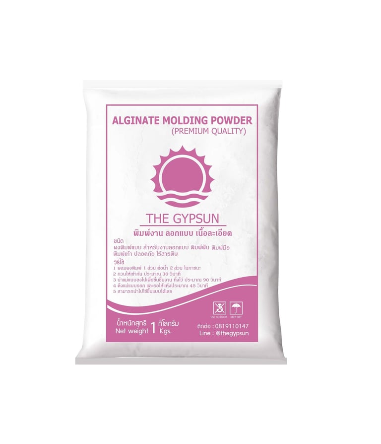 ผงอัลจิเนต เป็นผงโคลนนิ่งวัตถุ เนื้อละเอียด เกรด Premium แห้งไว เนื้อละเอียดสำหรับงานพิมพ์มือพิมพ์เท้าโดยเฉพาะ สูตรพิเศษ ไม่มีการระคายเคืองต่อผิวหนัง แม้กับเด็กแรกเกิด