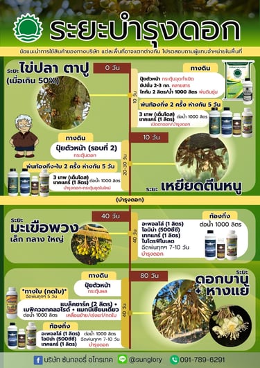 ฉีดพ่นทุกๆ 7-10 วัน บำรุงดอกและช่วยกระตุ้นใบใหม่