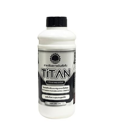 ปรับสมดุลบำรุงดิน ปรับค่า pH ดิน สร้างโพรงอาการในดิน เสริมสร้างการอุ้มน้ำและธาตุอาหาร ไททันช่วยตรึงธาตุอาหารและการปลดปล่อย เพิ่มจุลินทรีย์ที่จำเป็นในดิน ทำให้พืชแข็งแรงขึ้นอย่างมีประสิทธิภาพ
